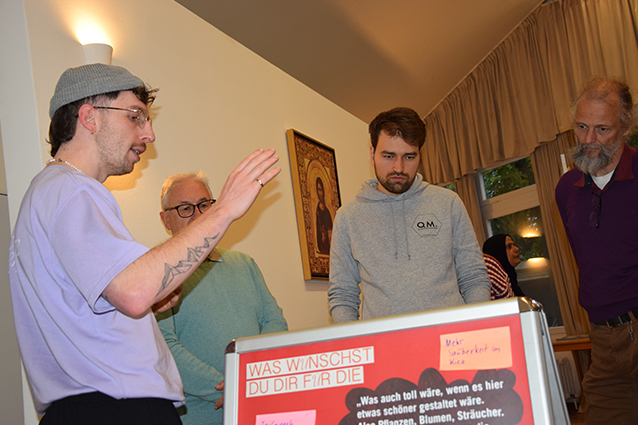 An einer anderen Station gab es verschiedene grafische Darstellungen zu den QM-Gebieten: Bevölkerungsdichte und -struktur, Grünflächenanteil, Infrastruktur und mehr. Da kam die Frage auf, warum im QM Germaniagarten die Bewohnerschaft schneller wächst als im QM Glasower Strasse?